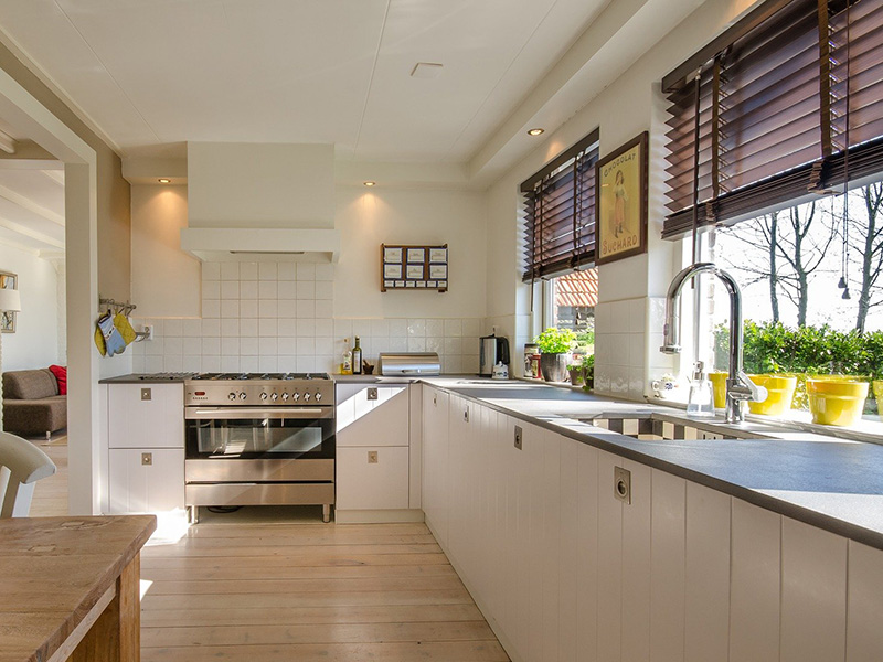 キッチンには気分を上げてくれる暖色系のカーテンがオススメです。