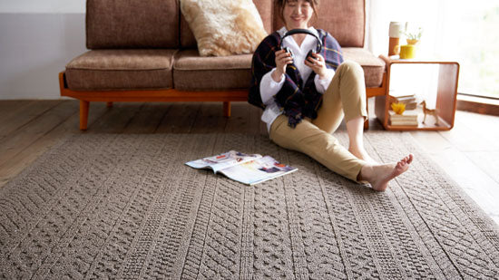 無地のラグはシンプルなので、どんなお部屋にもコーディネートして頂けます。素材やパイルの美しさをお楽しみ頂けます。