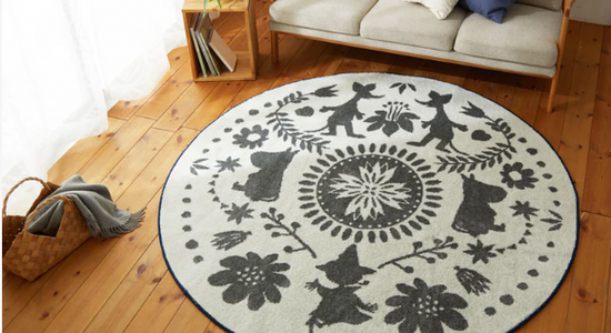 北欧はフィンランド発祥のムーミン。繊細なアートワークを、ゆったりとしたながれのあるカーテン・ラグ・マットに取り入れました。