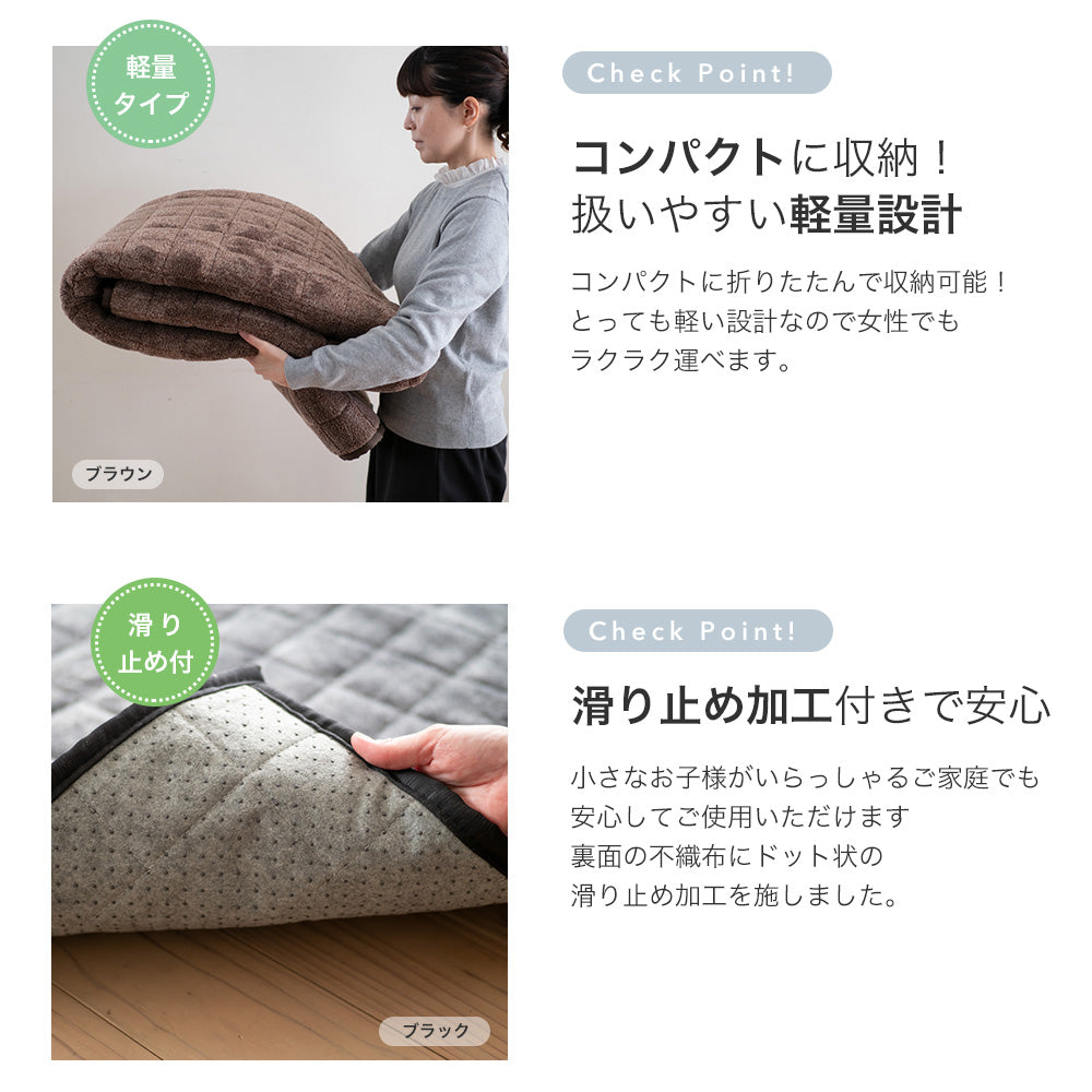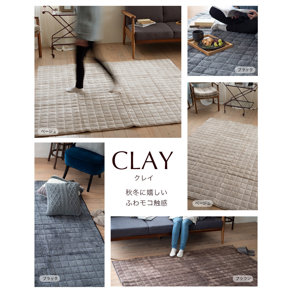 コンパクトに収納できる手触りふわモコ合わせやすいベーシックキルトボリューム洗えるラグ クレイ