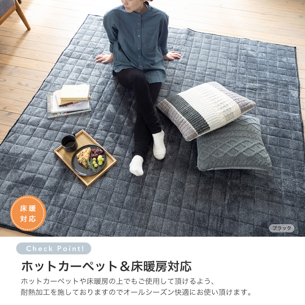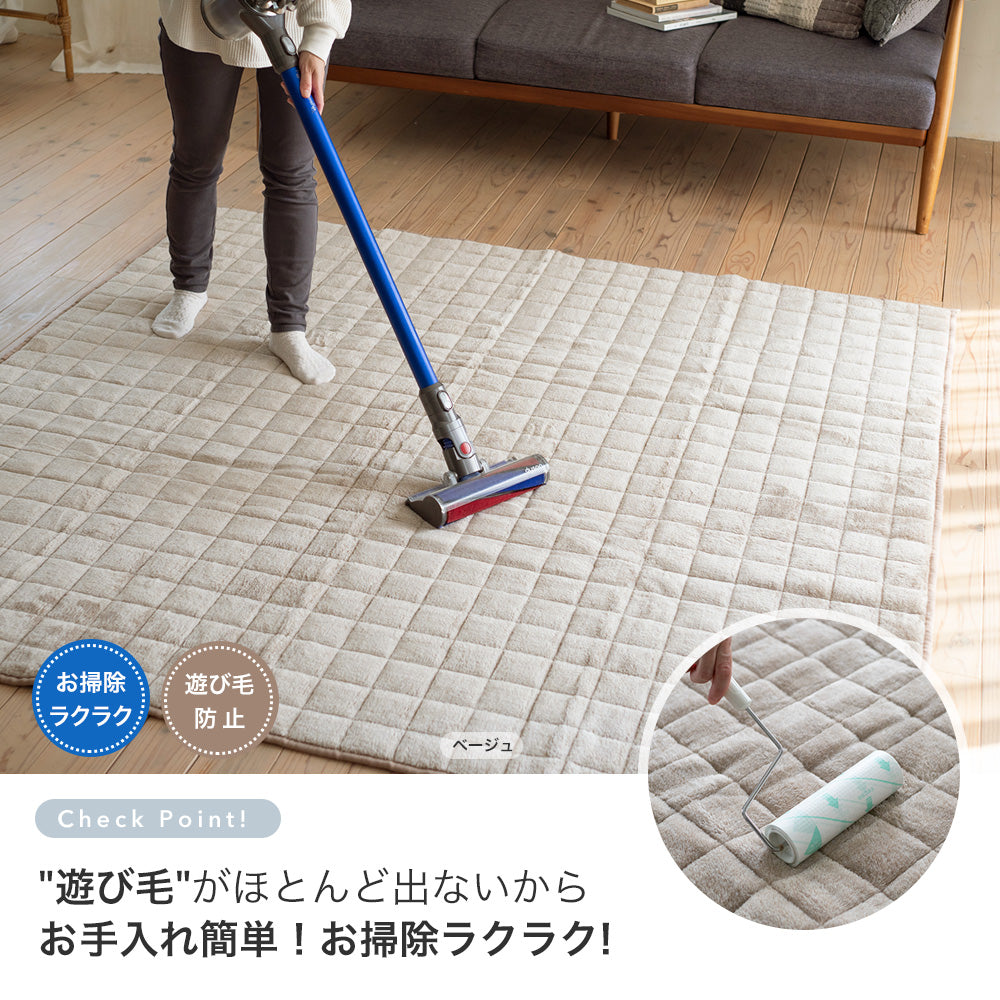 - 手触りふわモコ合わせやすいベーシックキルトボリューム洗えるラグ