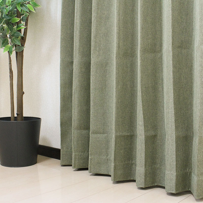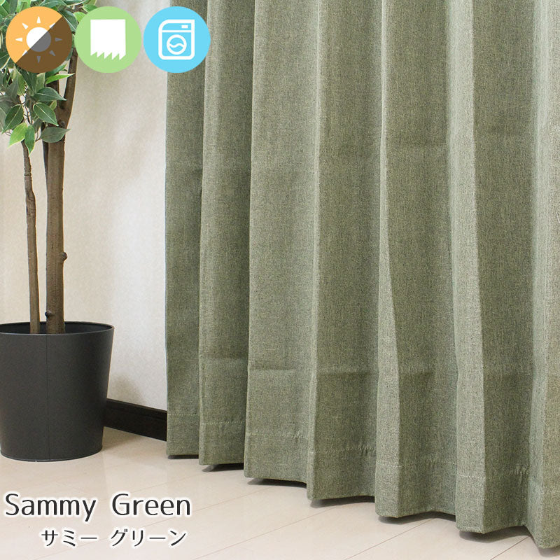 ざっくりした質感が魅力の2級遮光形状記憶無地調遮光カーテン Sammy - サミー グリーン(1枚入り)