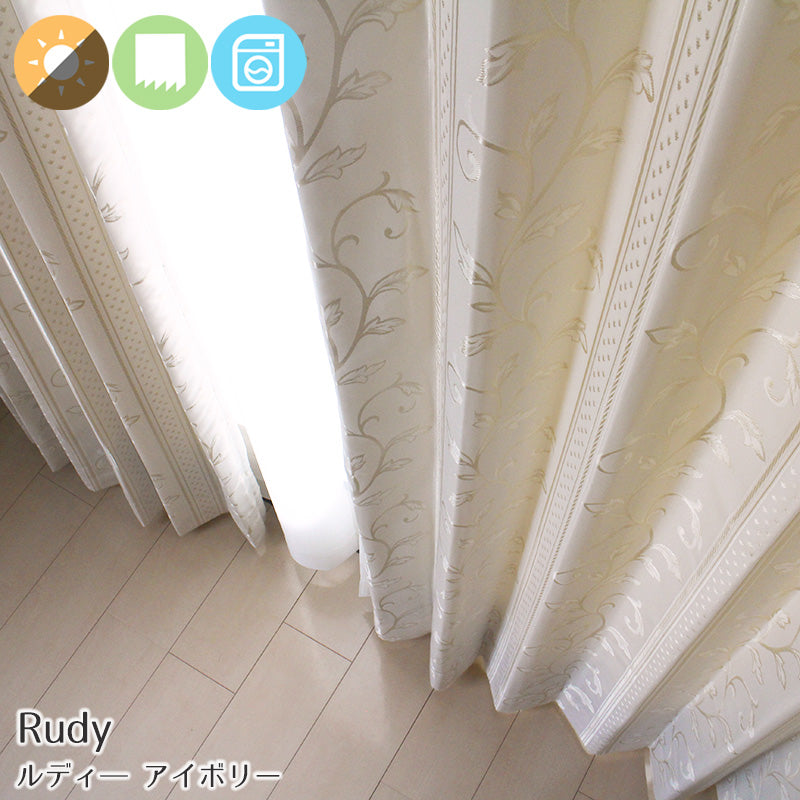 【裏地付き】形状記憶付き遮光カーテン Rudy - ルディー アイボリー(1枚入り)