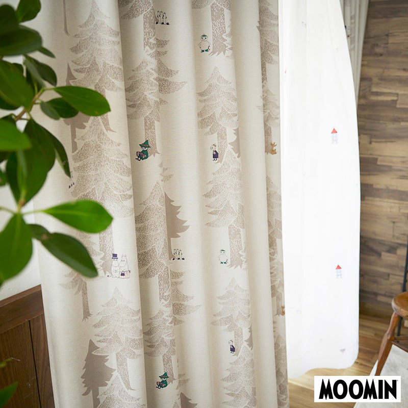 【MOOMIN ムーミン】PUUT drape プート ドレープ ムーミンと仲間たちが繊細なタッチの木々に隠れた北欧ナチュラル遮光カーテン ライトブラウン