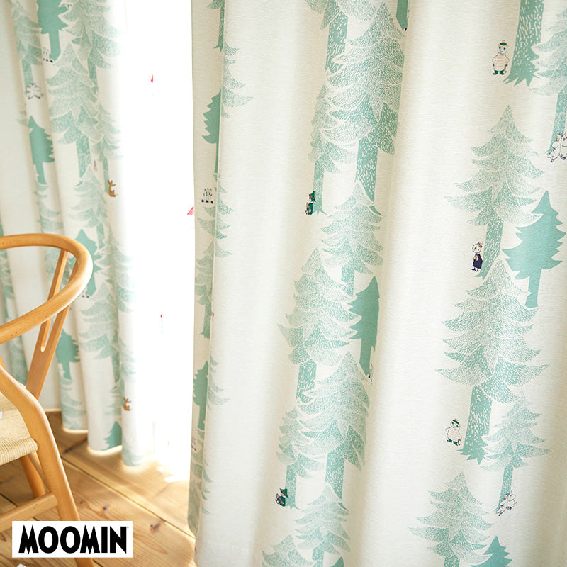【MOOMIN ムーミン】PUUT drape プート ドレープ ムーミンと仲間たちが繊細なタッチの木々に隠れた北欧ナチュラル遮光カーテン ライトブルーグリーン