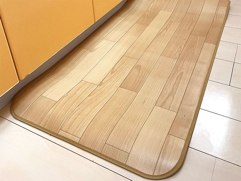 - 匂いを軽減して傷つきにくい表面強化タイプ!汚れても拭き取るだけでキレイ!はっ水・抗菌・防炎機能付きキッチンマット。
