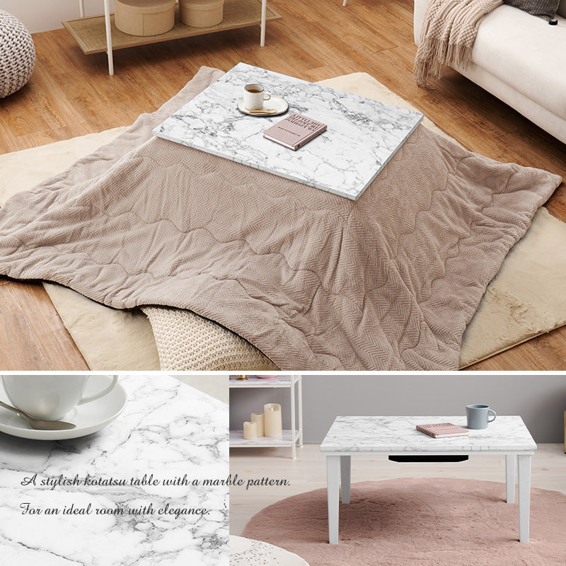おしゃれで可愛い大理石柄のこたつテーブル。コンパクトでひとり暮らしのお部屋でも置きやすいサイズのカジュアルコタツ 幅75cm