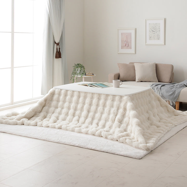 薄掛 こたつ布団 正方形 こたつ掛布団 こたつ掛け毛布 洗える おしゃれ かわいい コタツ布団 白 フェイクファー フランネル 省エネ 韓国インテリア 海外風 新生活 北欧 姫系 ふわふわ アイボリー 洗える薄掛こたつ布団 2サイズ