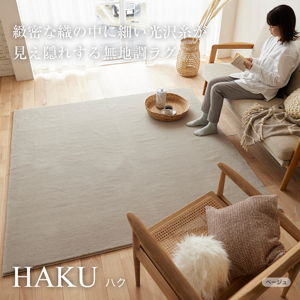 - ●緻密な織の中に細い光沢糸が見え隠れする無地調ラグ