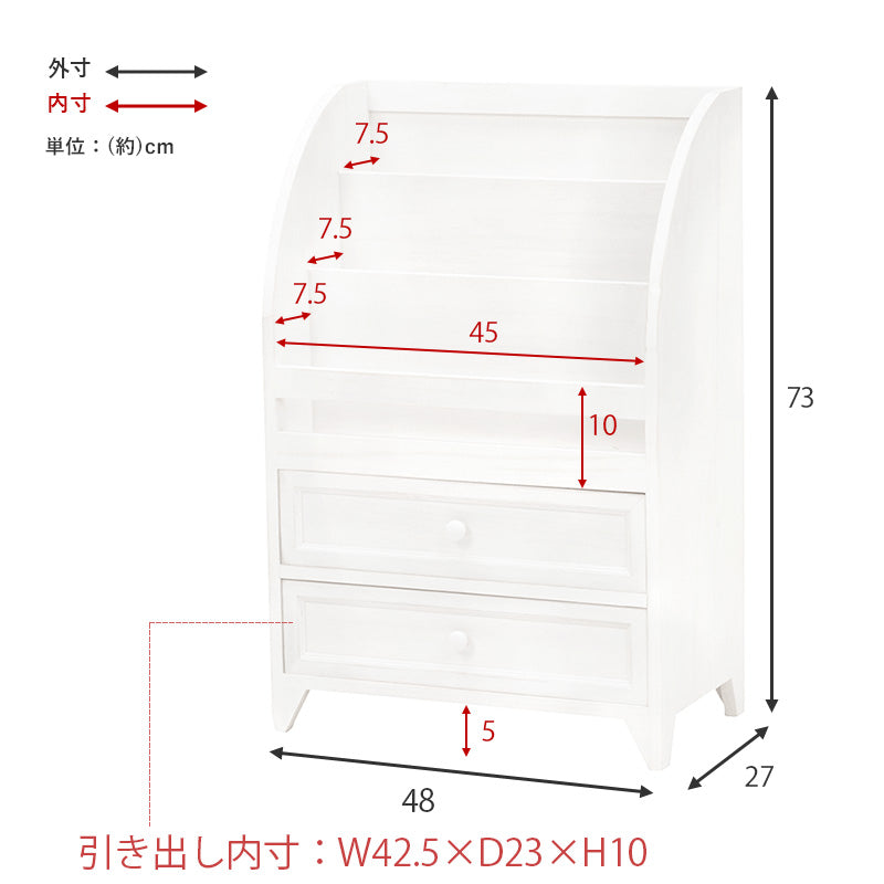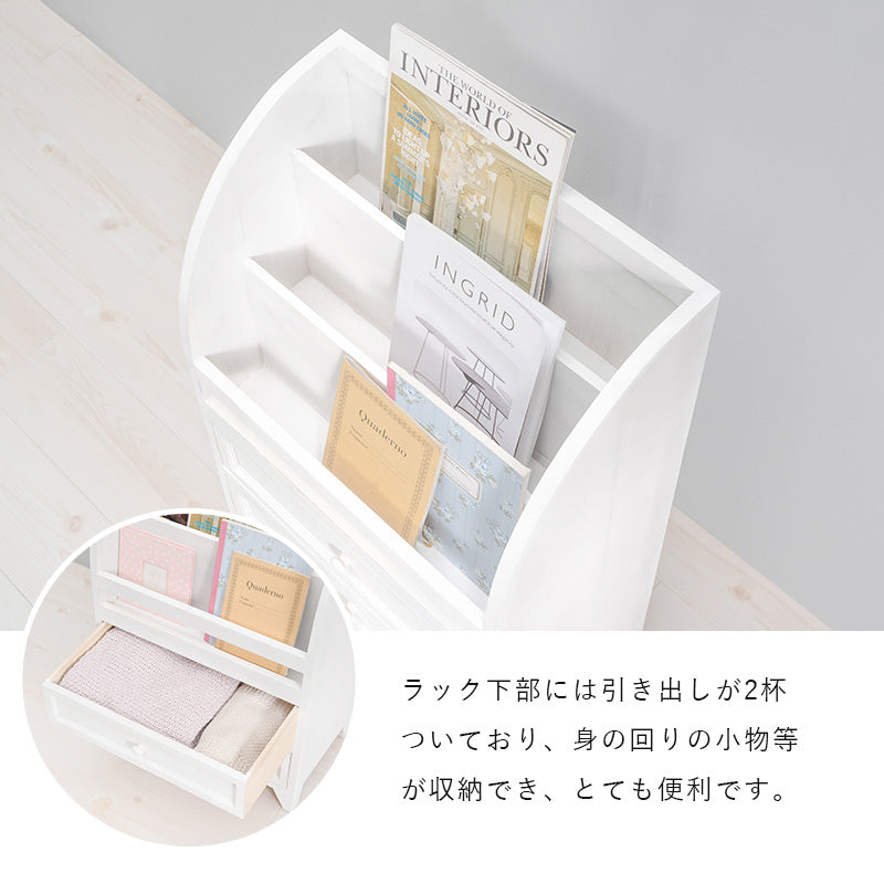 シャビーホワイトが可愛いシンプルなアンティーク調マガジンラック (約)幅48×奥行27×高さ73cm