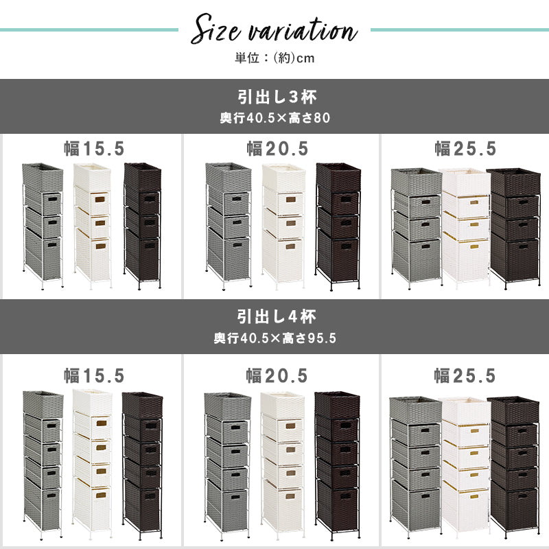 通気性の良いランドリーラック 幅25.5cm 引き出し