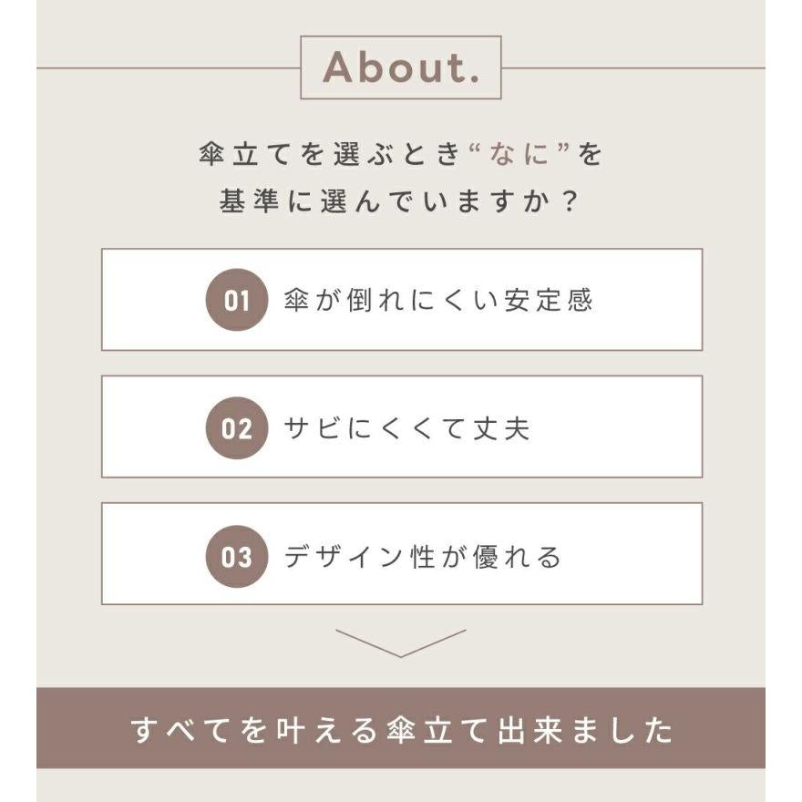 - シンプルデザインですっきりと置ける、スチール製傘立てスリムで場所を取らず、狭いスペースにも置けるサイズ感が嬉しい傘立て。全体にデザインを施した円柱タイプと、可愛らしいハウス型の2種類展開です。粉体塗装のスチール製で錆びにくく、丈夫な作りに仕上げました。