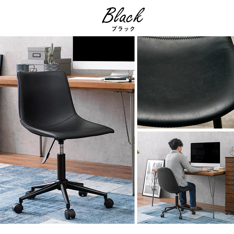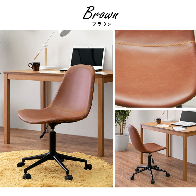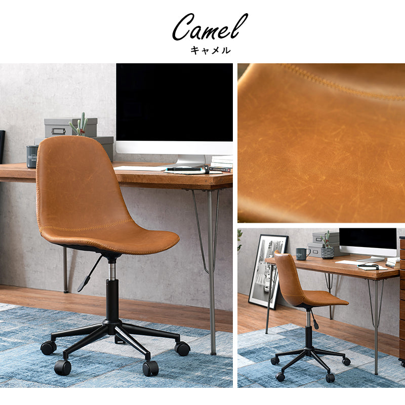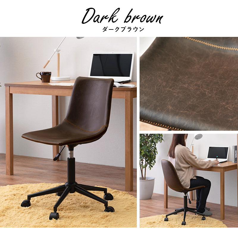 - まるで本革のようなヴィンテージ調のチェア。昇降式でキャスター付きなのでデスク周りで使いやすい。