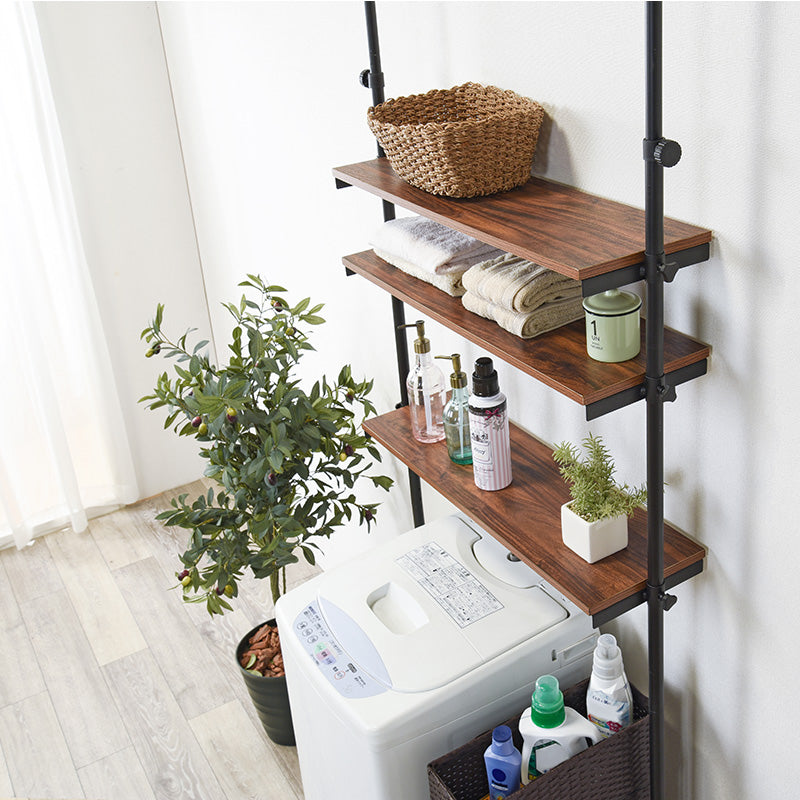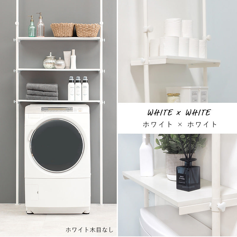 - 洗濯機上の空間を有効活用できるつっぱりラック。