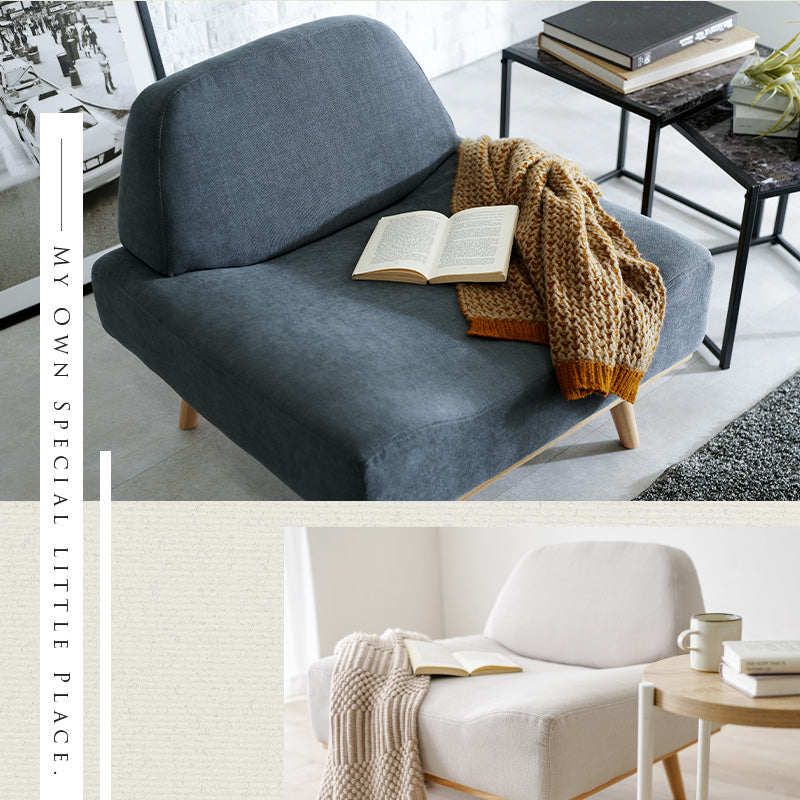 - 空間に圧迫感を与えないローデザインの一人掛けソファ。肘掛けを無くしたすっきりとした印象で、ゆったり広々座れます。