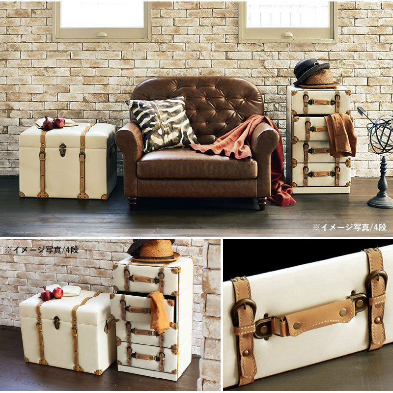 センスと遊び心あるトランク型チェスト おしゃれ 5段 一人暮らし トラッドスタイル 引き出し