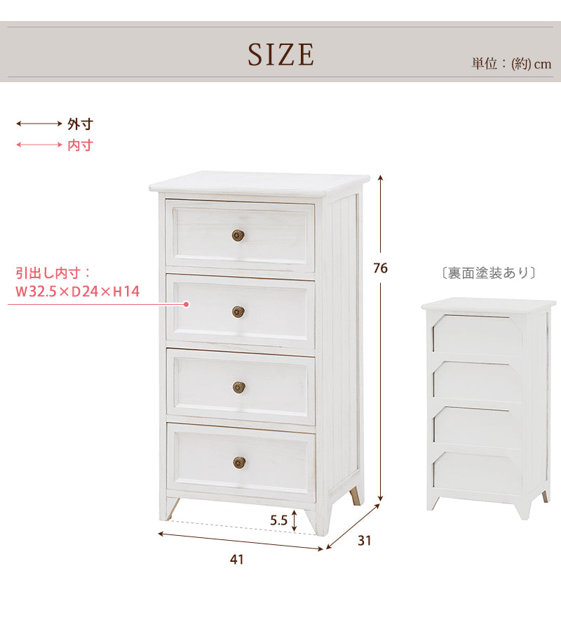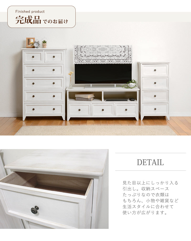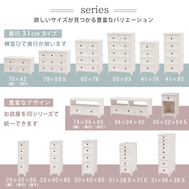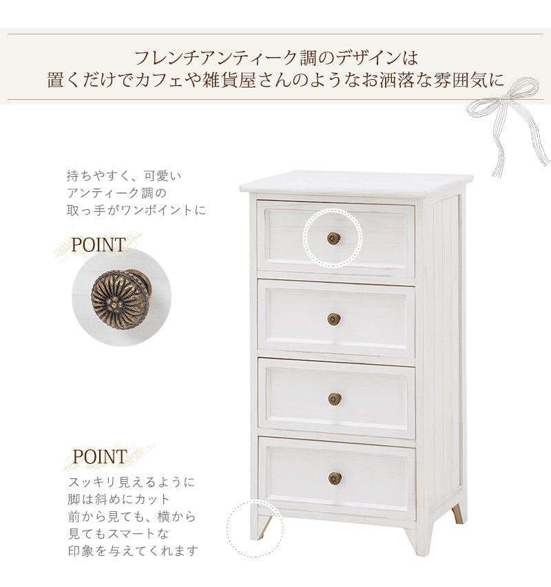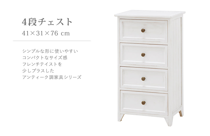 シャビーウッドチェスト チェストをフレンチアンティーク ホワイト 幅41cm 引き出し4杯