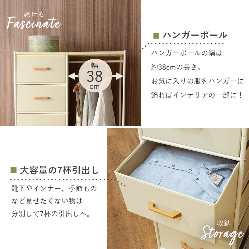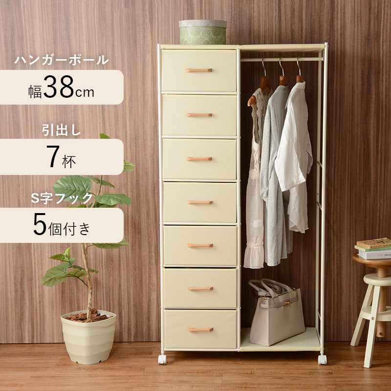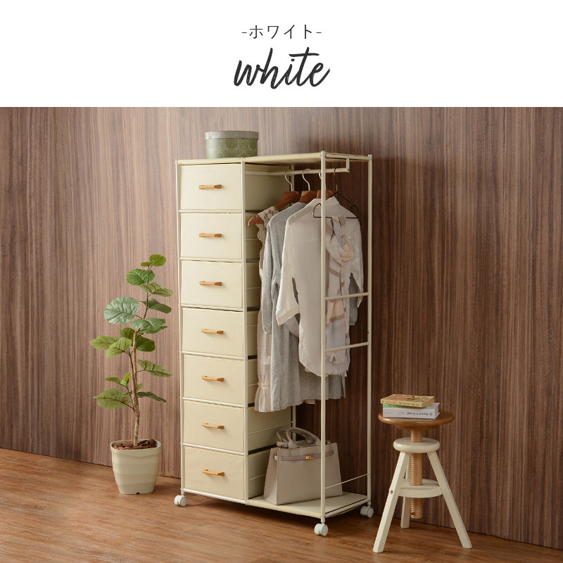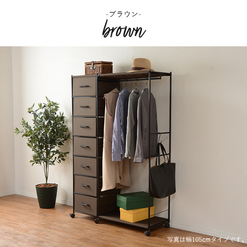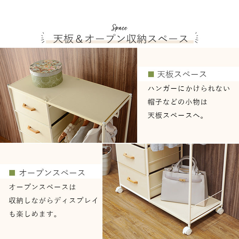 引出し収納も兼ね備えたハンガーラック 幅80cm 7杯 キャスター付