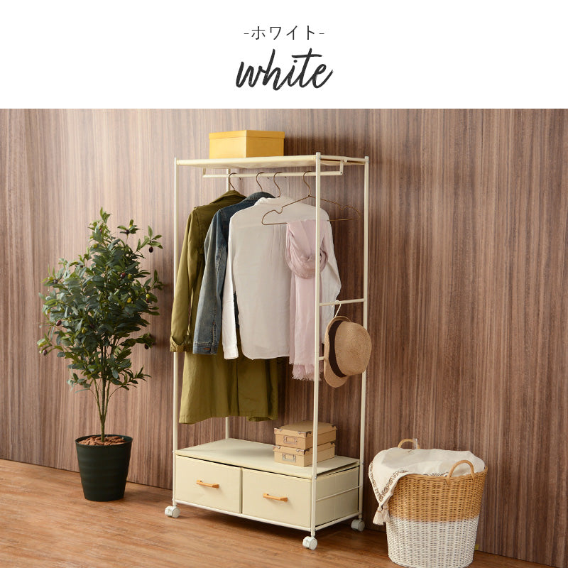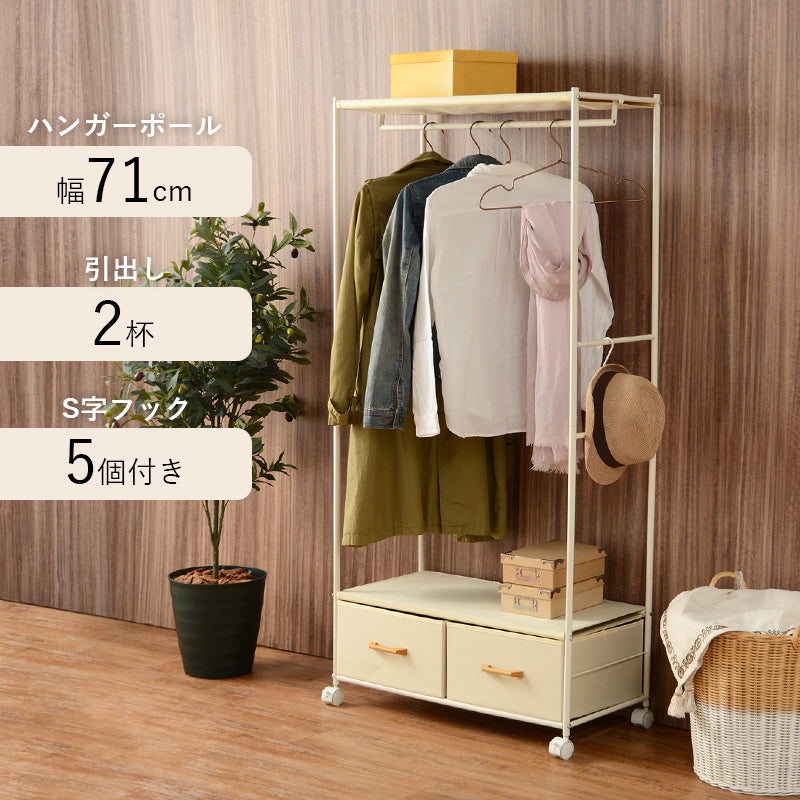 引出し収納も兼ね備えたハンガーラック 幅75cm 2杯 キャスター付