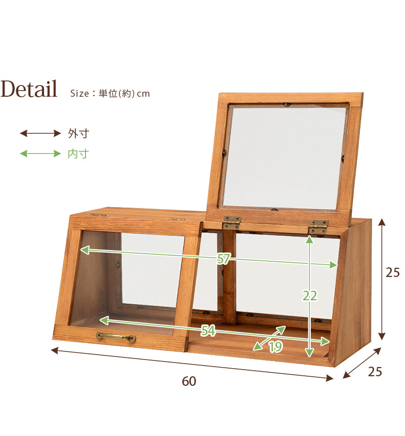 カフェ風 ビンテージ調カウンター上ガラスケース 木の風合い ディスプレイ用 幅60cm