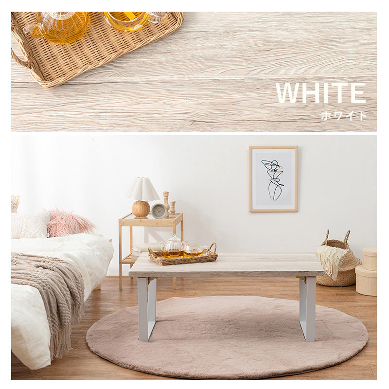 - 天然木の素材感を再現したセンターテーブル。隙間に収納しやすい折りたたみ式