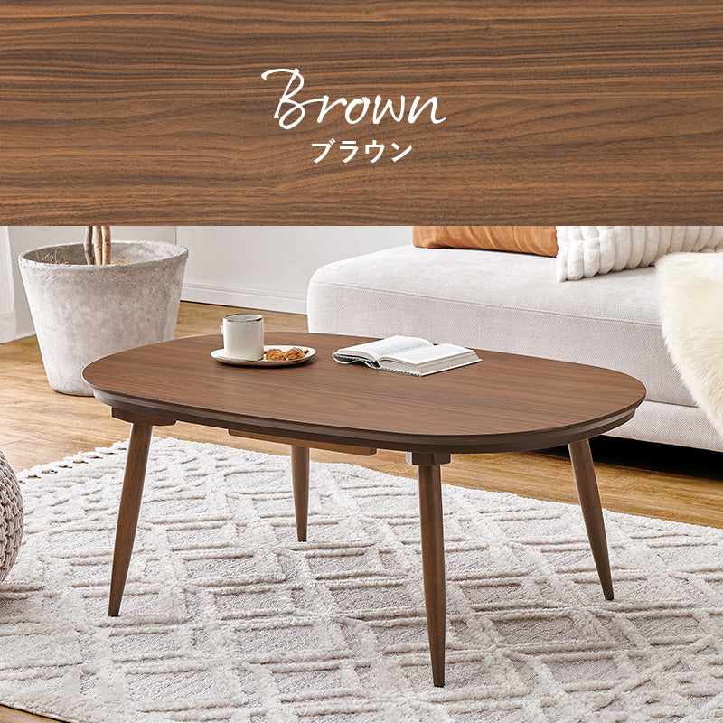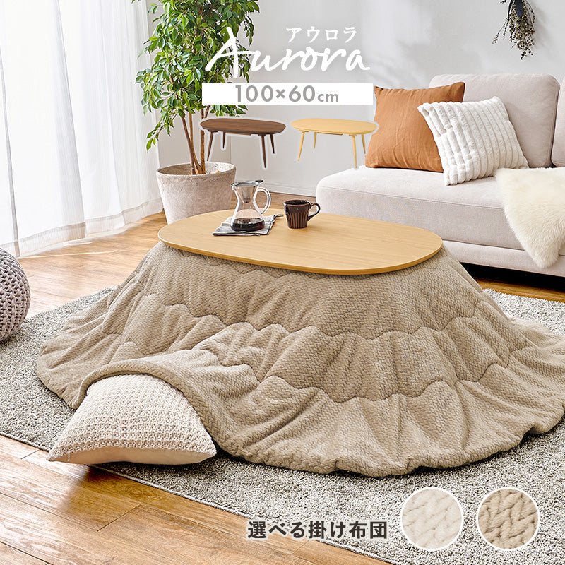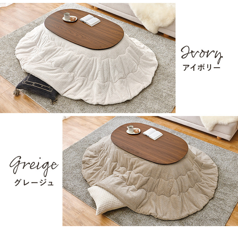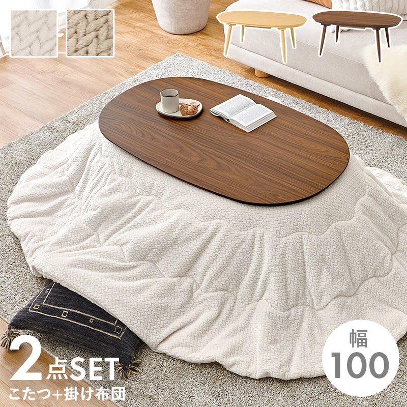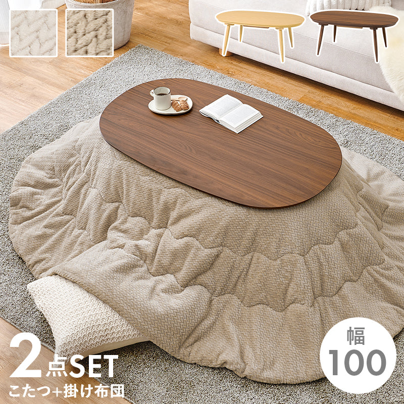 丸みが美しいオーバル型の天板にシャープな脚を合わせたこたつテーブルと立体感のあるニット柄の掛け布団セット2点セット 本体巾100cm