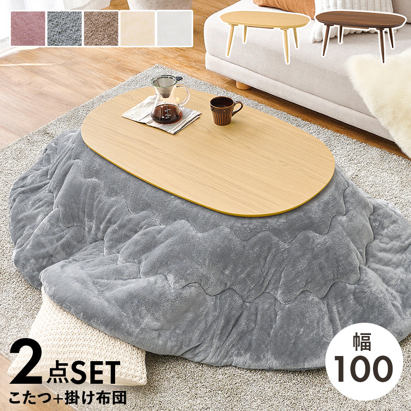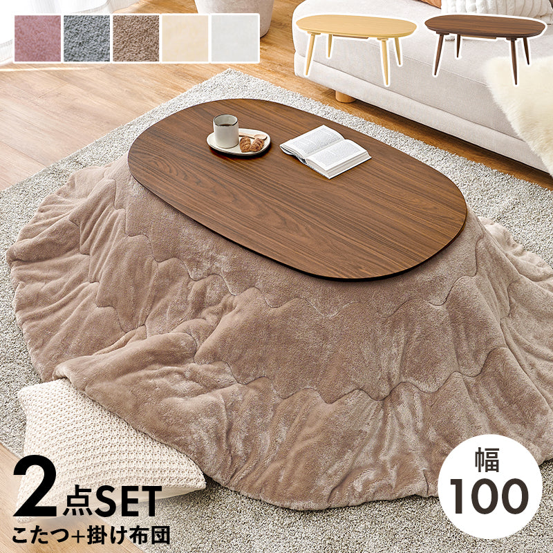 丸みが美しいオーバル型の天板にシャープな脚を合わせたこたつテーブルととろけるような肌触りのシンプルな掛け布団2点セット 本体巾100cm