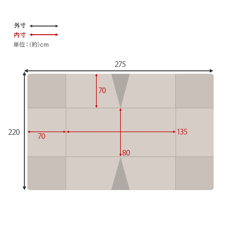 - 張地:表・裏・フラップ/ポリエステル100%、中綿:ポリエステル100%