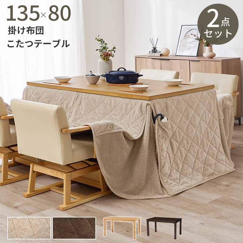 ダイニングコタツ+うす掛け布団 こたつ布団セット 高さが6段階に変更できるこたつテーブル 135×80cm ファミリー向け 2点セット