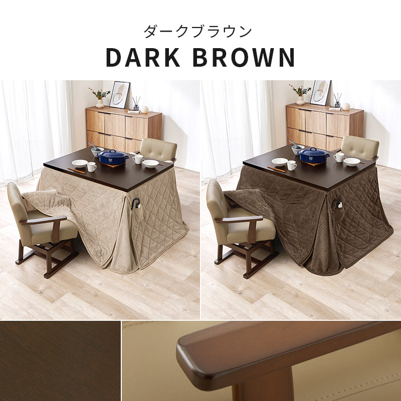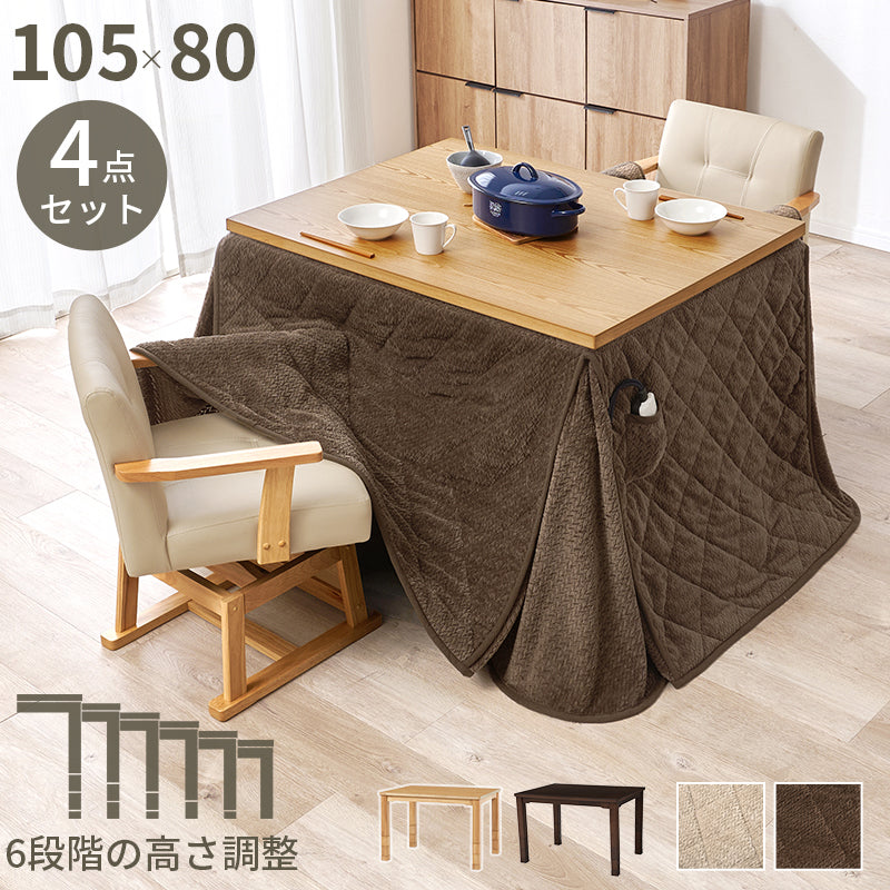 ダイニングコタツ4点セット テーブルの高さを6段階に変更 こたつ布団セット 105×80cm こたつ椅子 2脚 ダイニングこたつ