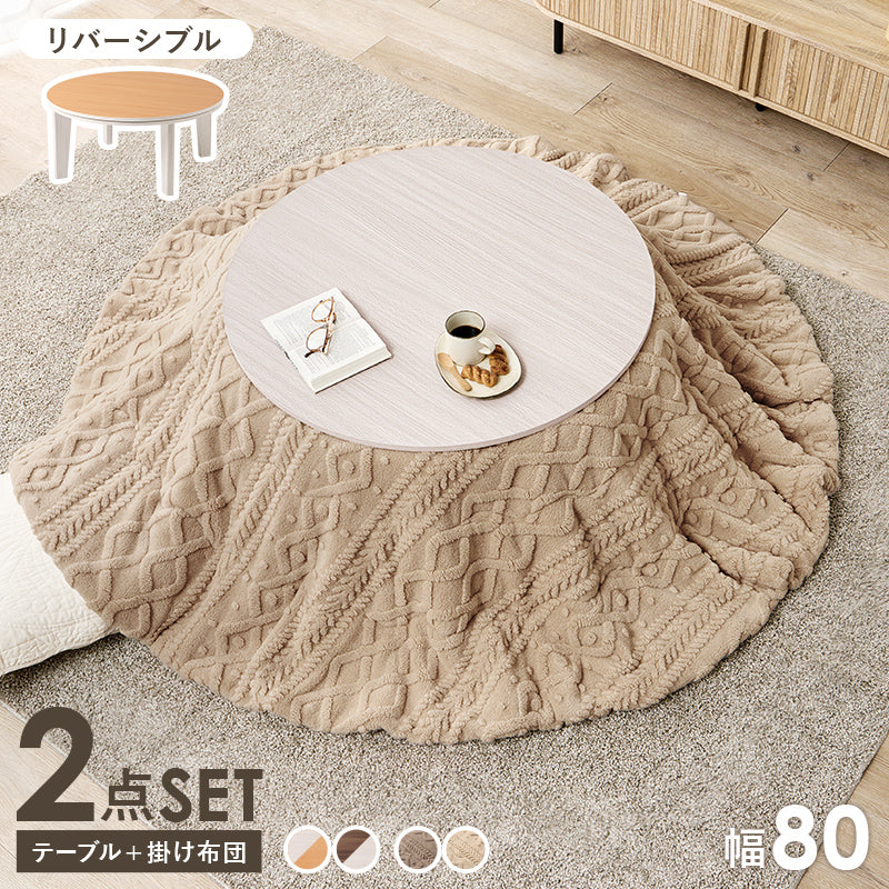 こたつ+うす掛け布団 2点セット リバーシブル円型コタツ セーターのような立体的なデザインがおしゃれな掛け布団セット