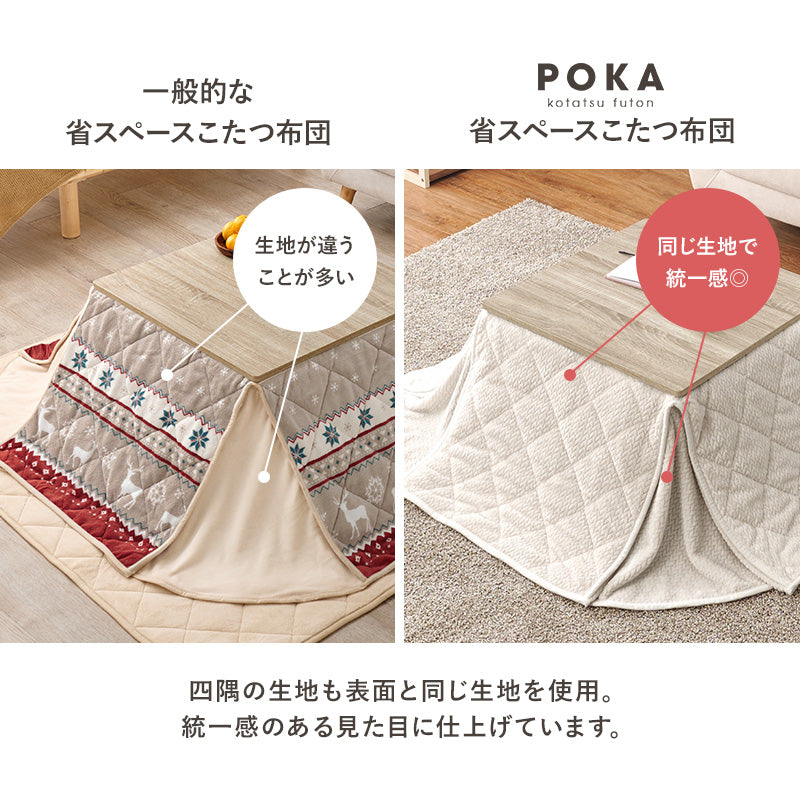 細かく編みこまれた立体感のあるニット柄が上品なこたつ布団。四隅にスリットが入った省スペースタイプなので、お部屋の圧迫感を軽減します。洗濯可能