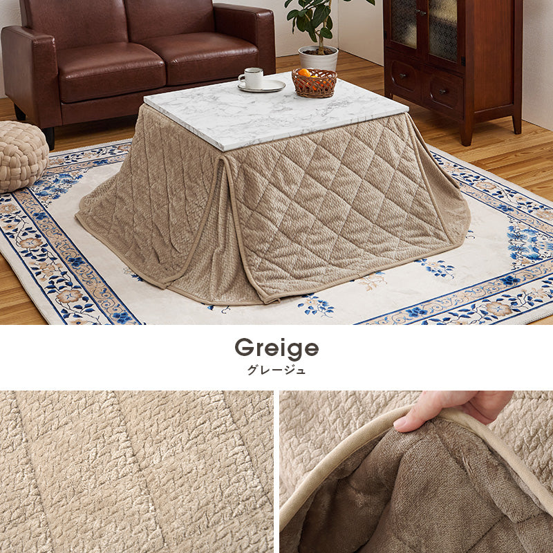 細かく編みこまれた立体感のあるニット柄が上品なこたつ布団。四隅にスリットが入った省スペースタイプなので、お部屋の圧迫感を軽減します。洗濯可能