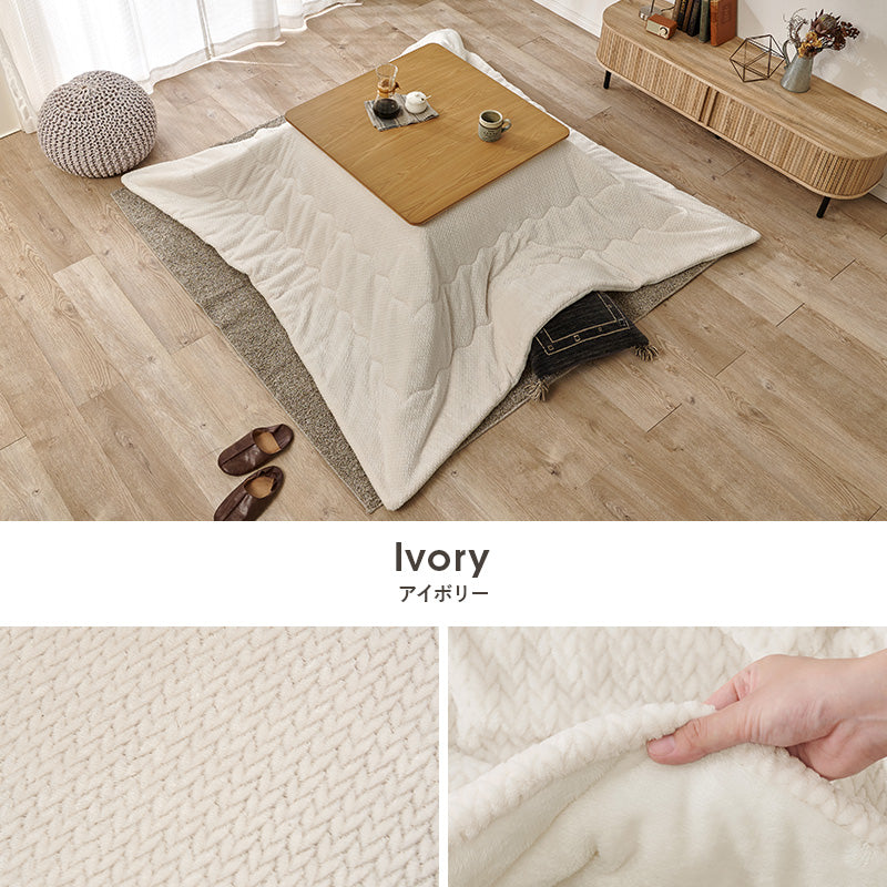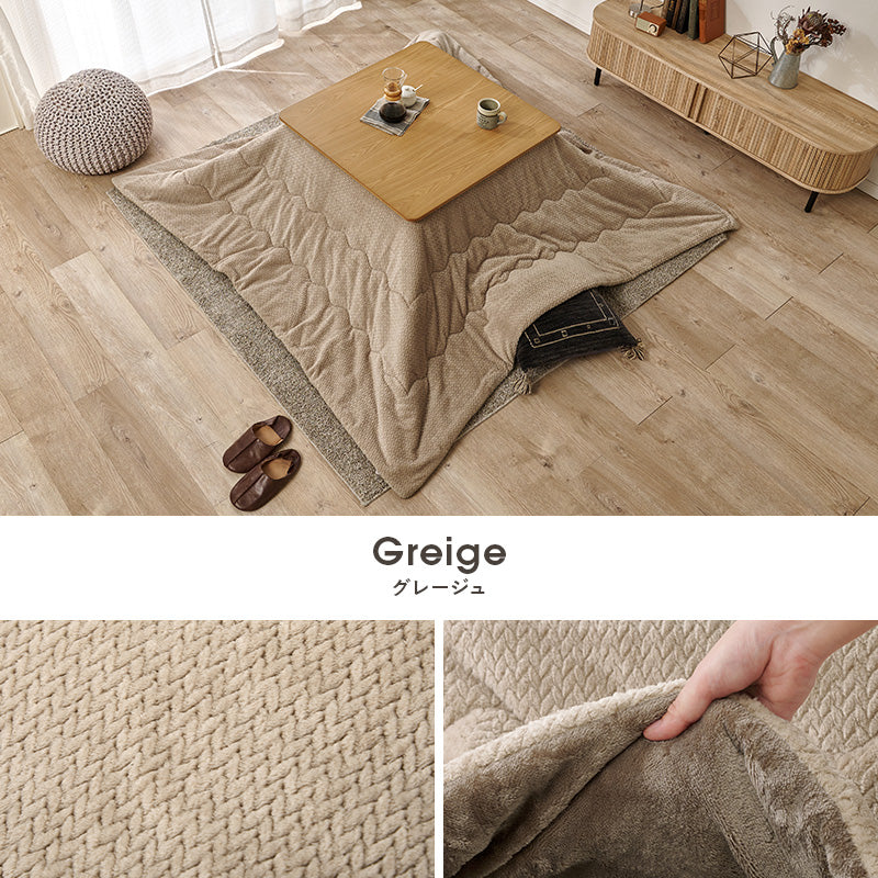 細かく編みこまれた立体感のあるニット柄が上品なこたつ布団。もこもこしすぎない厚みでコンパクトに収納可能。洗濯可能- ■組成