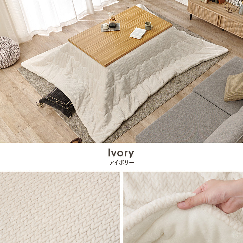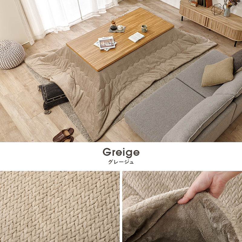 細かく編みこまれた立体感のあるニット柄が上品なこたつ布団。もこもこしすぎない厚みでコンパクトに収納可能。洗濯可能- ■組成