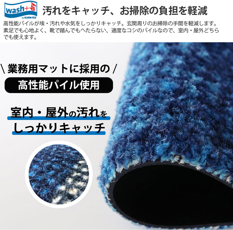 - "wash + dry"は業務用マットの製造メーカー「KLEEN-TEX」がお届けする、美しいデザインと高い機能性を併せ持つヨーロッパデザインの家庭用マットブランド。 耐久性や集塵性・吸水性の高さはもちろんのこと、耐洗濯性、速乾性にも優れているオンリーワンアイテムです。