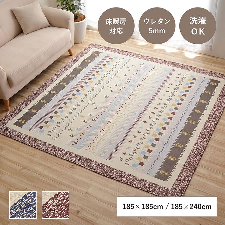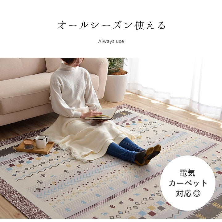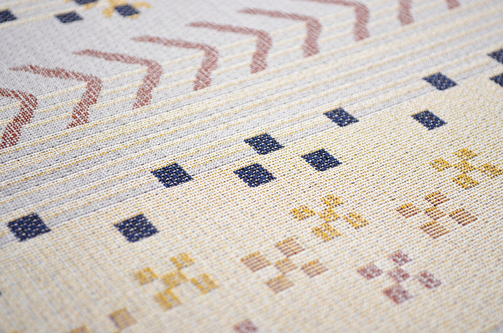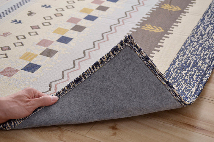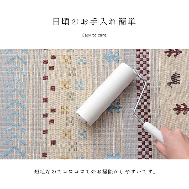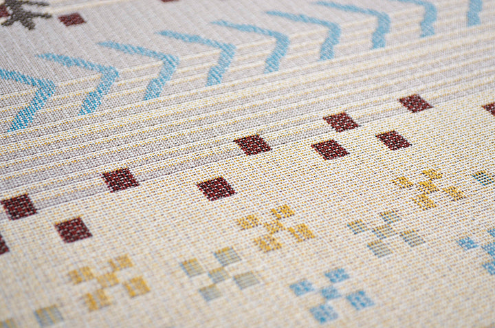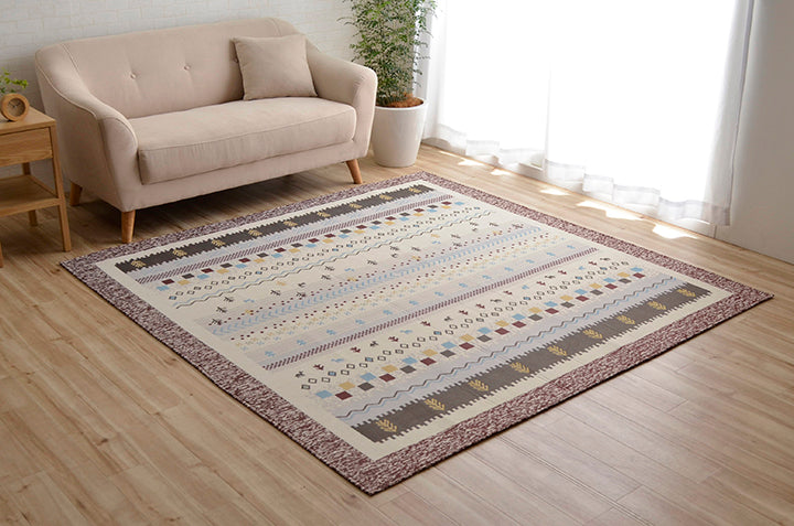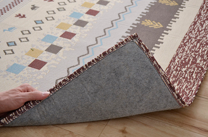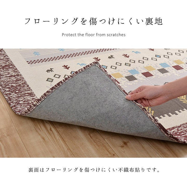 - ■ 手織りのような上品な風合いのジャガード織で、人気のギャベ柄を再現。デザイン性が高く、耐久性にも優れています。