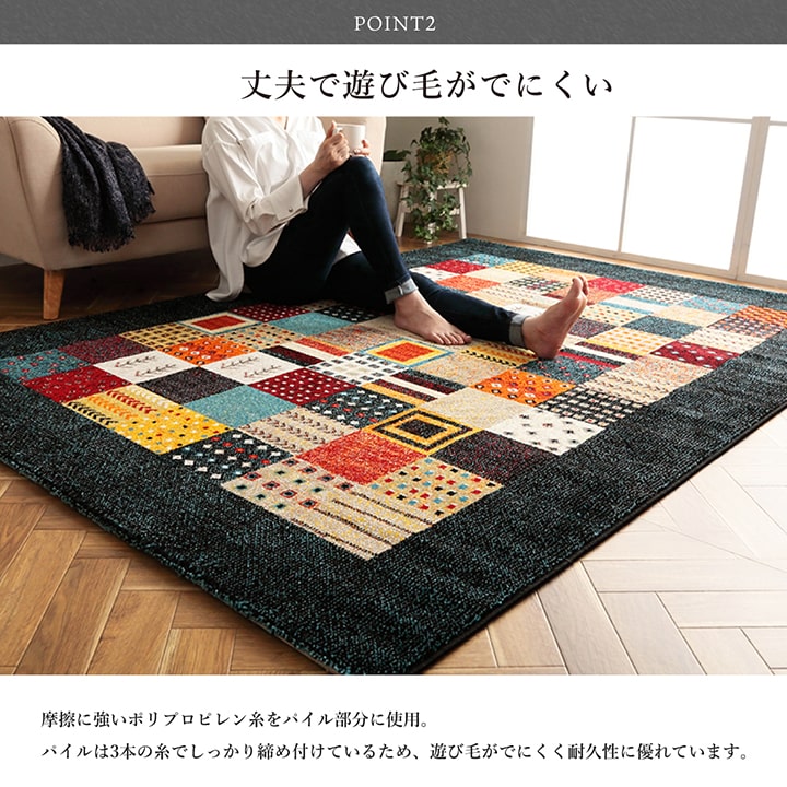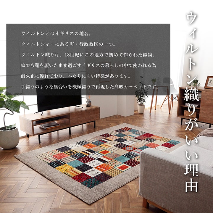 ■ 密度が高く、耐久性に優れているウィルトン織りのラグ
