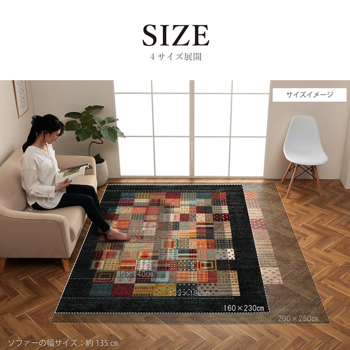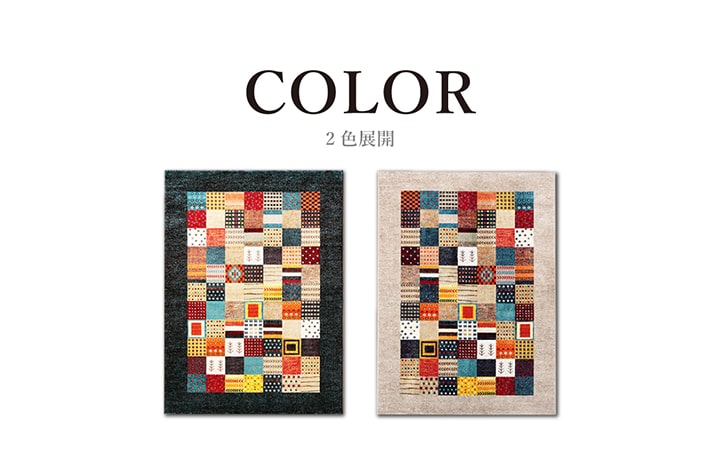 表情豊かなギャッベ調デザインのトルコ製ウィルトン織りカーペット ルシアン