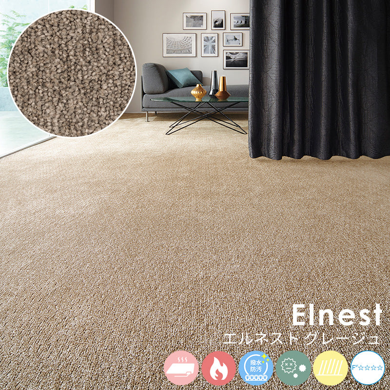 しっとり柔らかな触り心地で不均一な光沢感が空間をラグジュアリーに演出するナイロンカーペット Elnest - エルネスト グレージュ