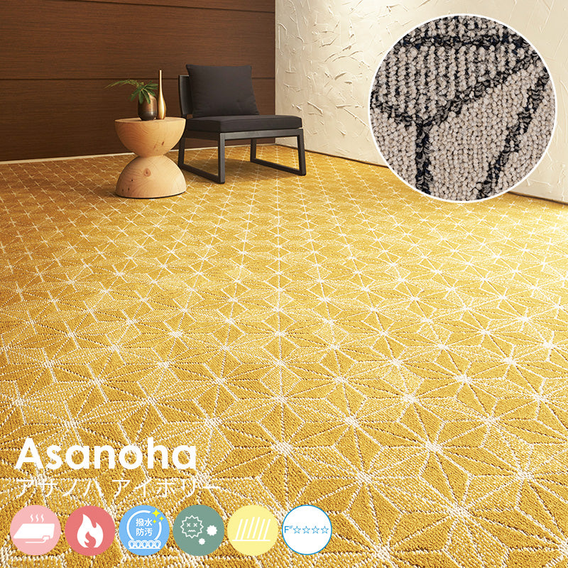 伝統文様である麻の葉柄を現代的にアレンジ、空間に程よく和のテイストを加えます ナイロンカーペット Asanoha - アサノハ アイボリー