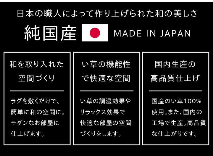 職人の手によって丁寧に織られた繊細かつ上質な仕上がりの純国産い草ラグカーペット Fパテール