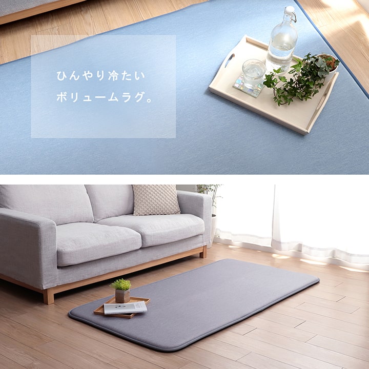 触れるとひんやり感じる接触冷感生地を使用したボリュームラグ