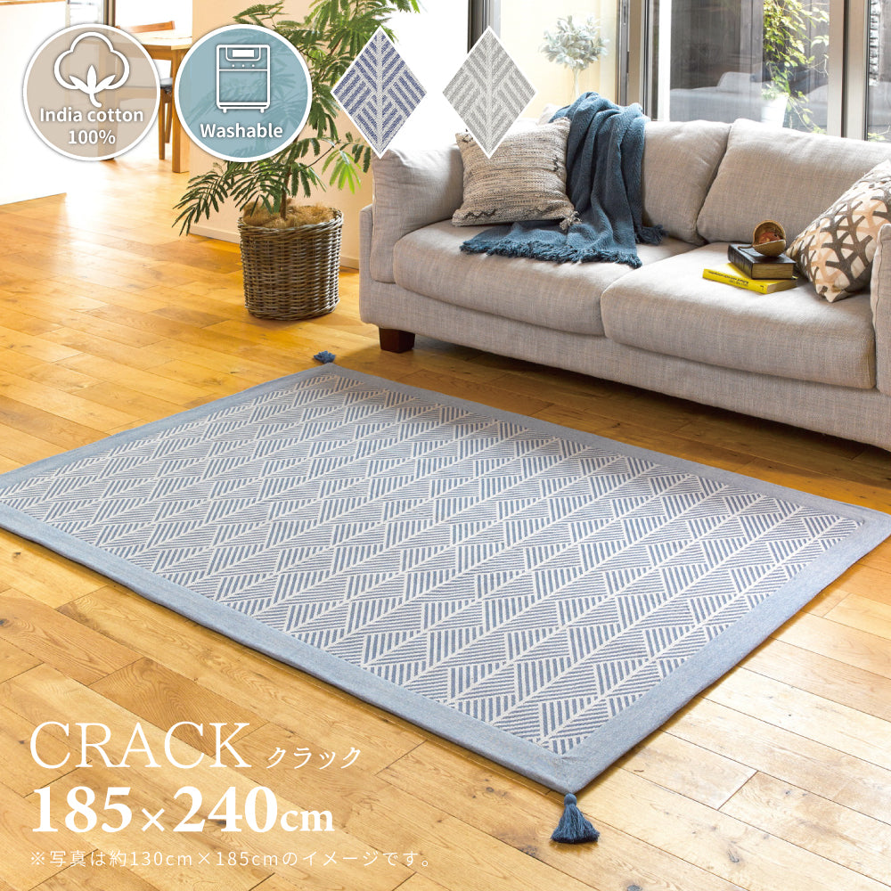ざっくり感のあるコットンの心地よい手触りと風合い インド綿ボンディングラグ クラック