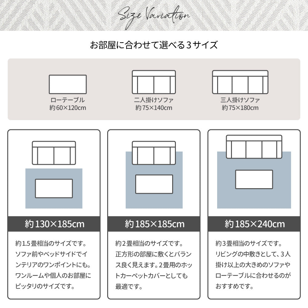 通常のラグサイズより大きいサイズのアイテムを集めました!ご希望のサイズへのカットも可能です!