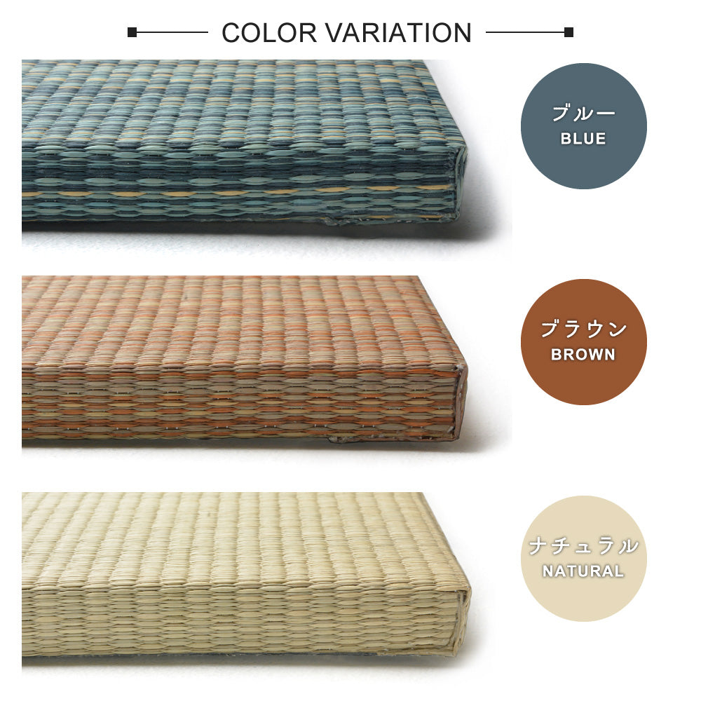 - 床に並べるだけで簡単に畳のスペ-スが作れる「置き畳」です。軽量なので女性1人でも取り扱いがラクラク。ちょっとした隙間スペ-スを有効活用できるのでキッズ向けのプレイマットからシニアのお昼寝、お父さんお母さんのごろ寝スペ-スまで簡単に作れます。適度なクッション性があり、階下への配慮や床のキズ防止など、子育て中にもうれしい便利グッズ。天然い草を使用し、等間隔な織り方でサラッとなめらかな手触り。い草の空気清浄や湿度調整機能で年中快適です。