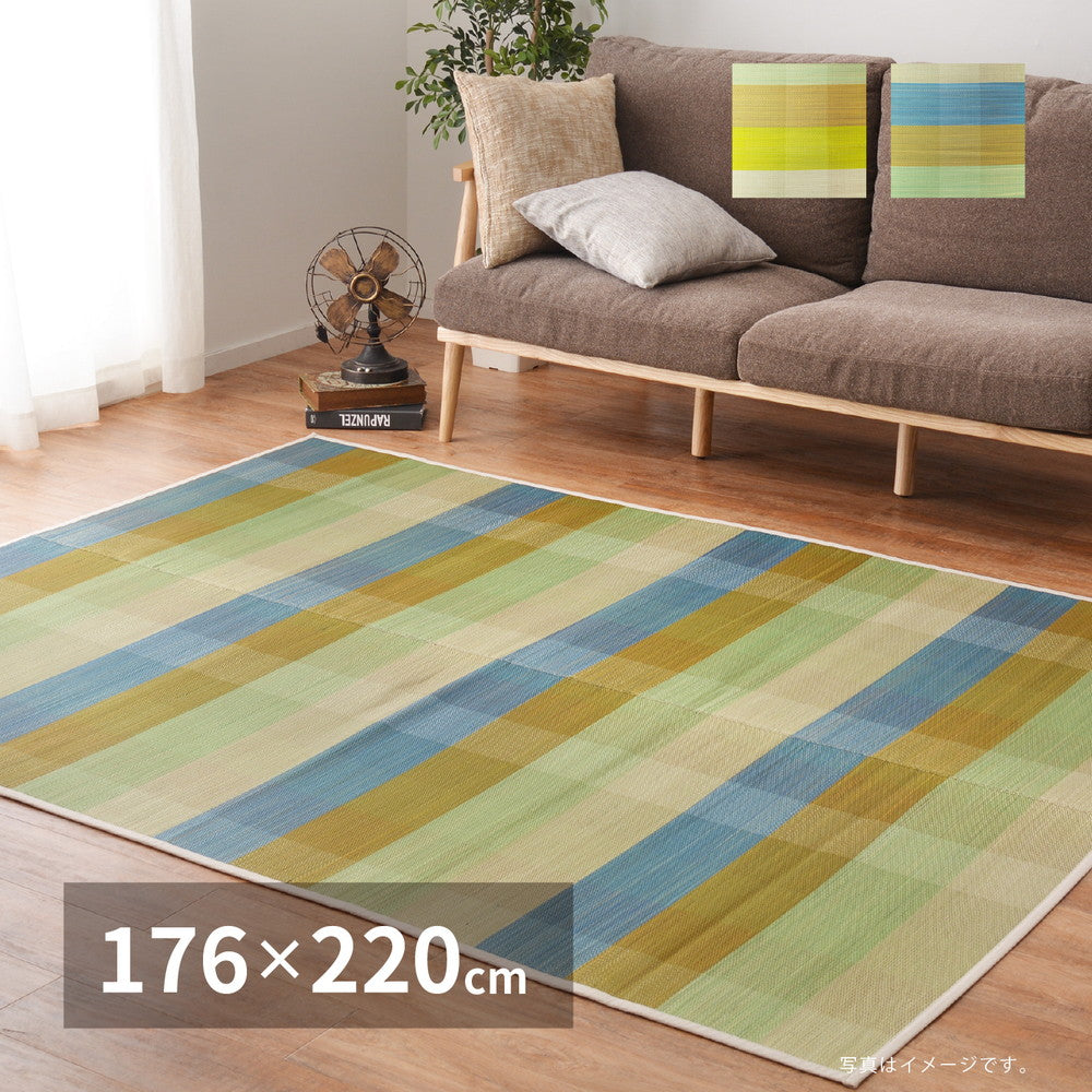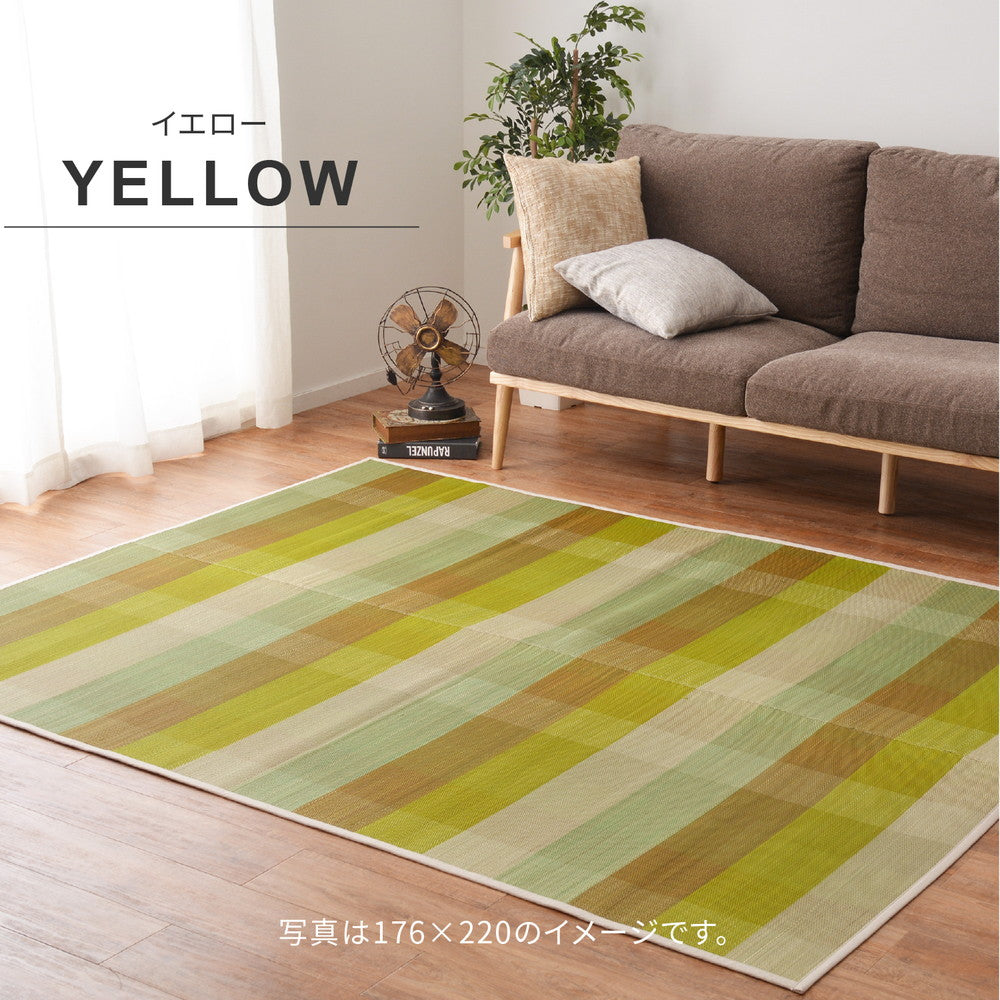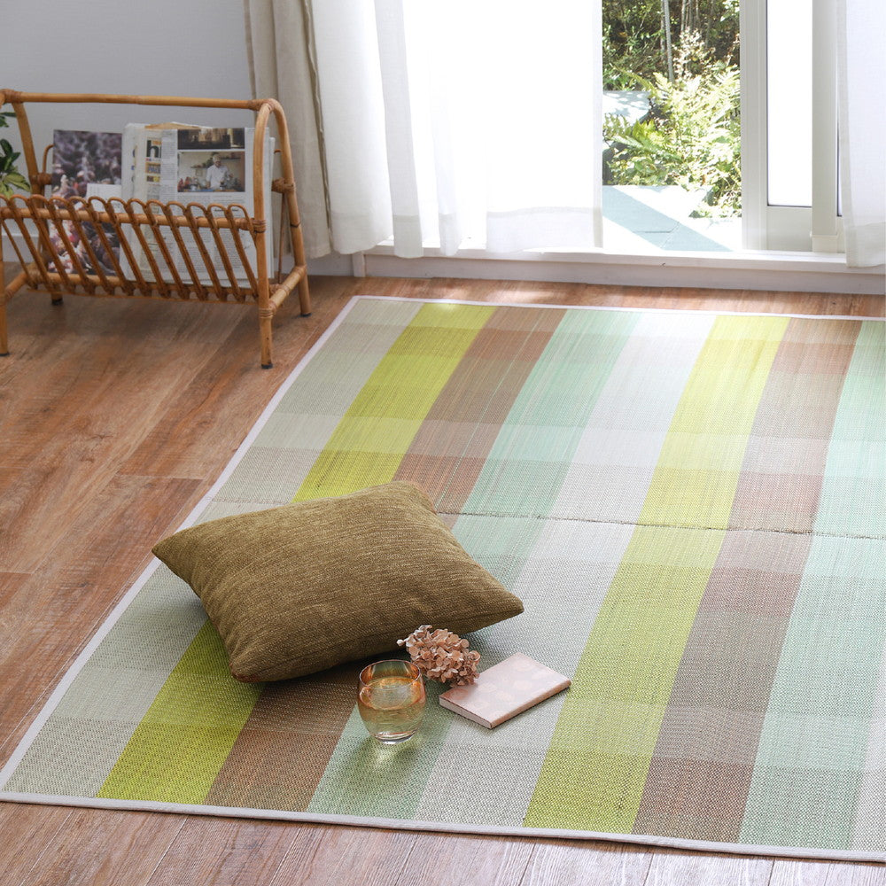 - 大きめチェックが人気のい草ラグ。爽やかな可愛らしい色合いで、どんな部屋にも合わせやすいデザインに。い草がもつ湿度調整機能でサラリと爽やかな肌触りは、暑い季節を快適に過ごすには最適なアイテムです。裏面は、不織布加工で床を傷つけにくくなっています。