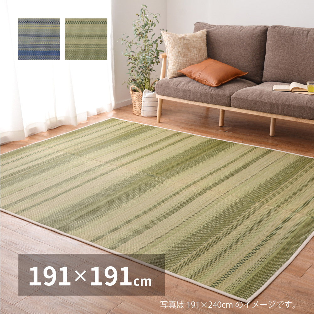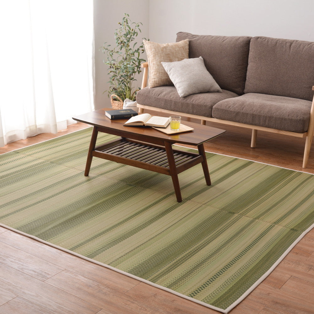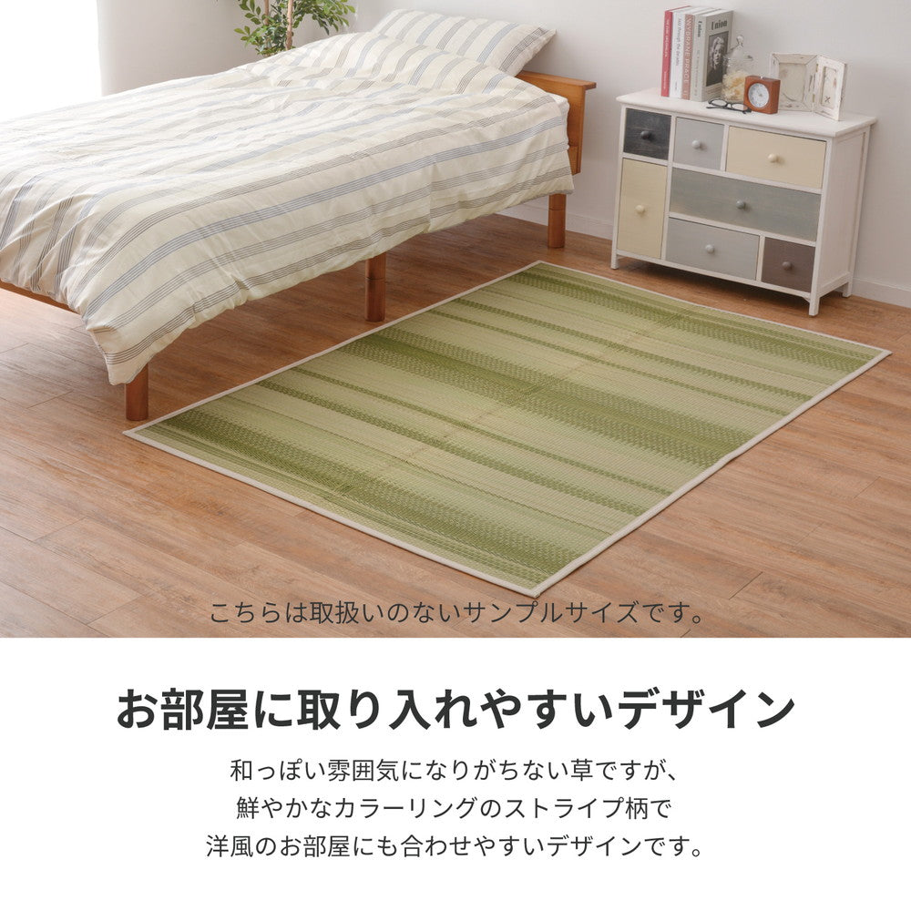爽やかなストライプ柄でお部屋に取り入れやすいい草ラグ