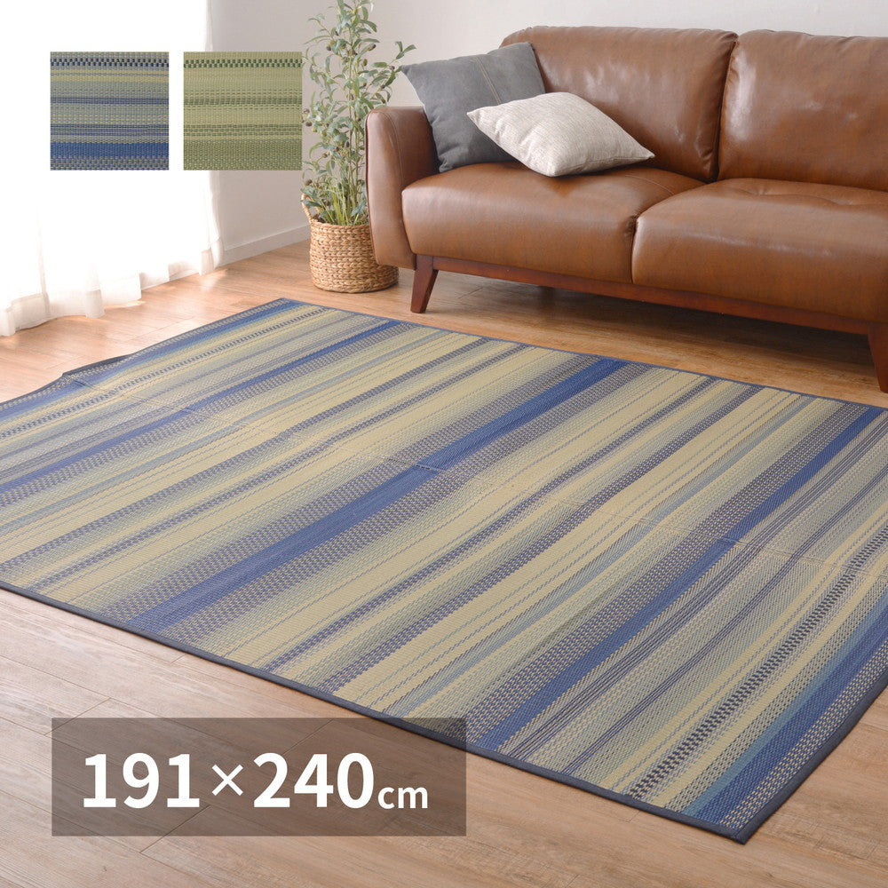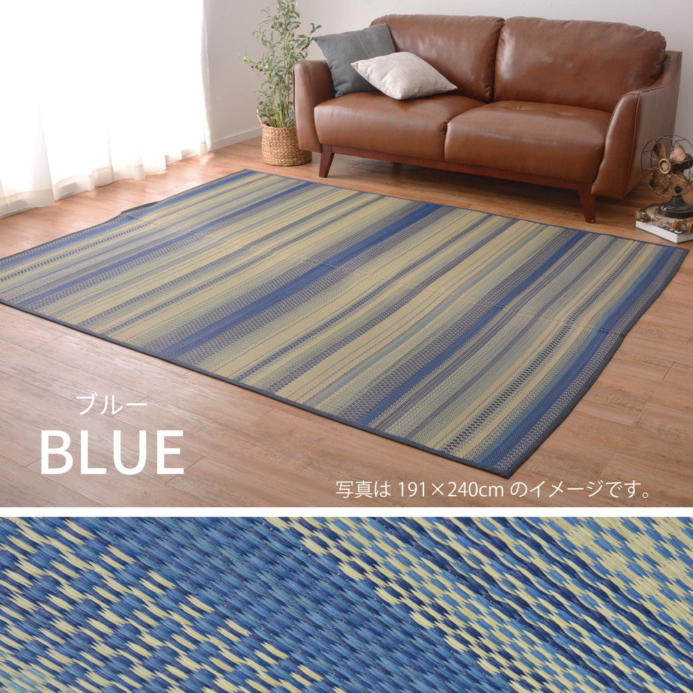 - 爽やかなストライプ柄でお部屋に取り入れやすいい草ラグ。い草がもつ湿度調整機能でサラリと爽やかな肌触りは、暑い季節を快適に過ごすには最適なアイテムです。裏面は、不織布で床を傷つけにくくなっています。