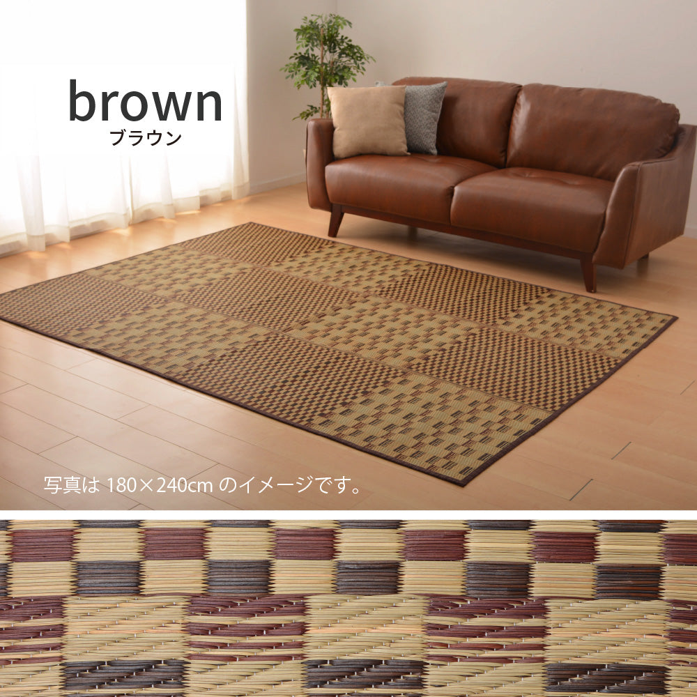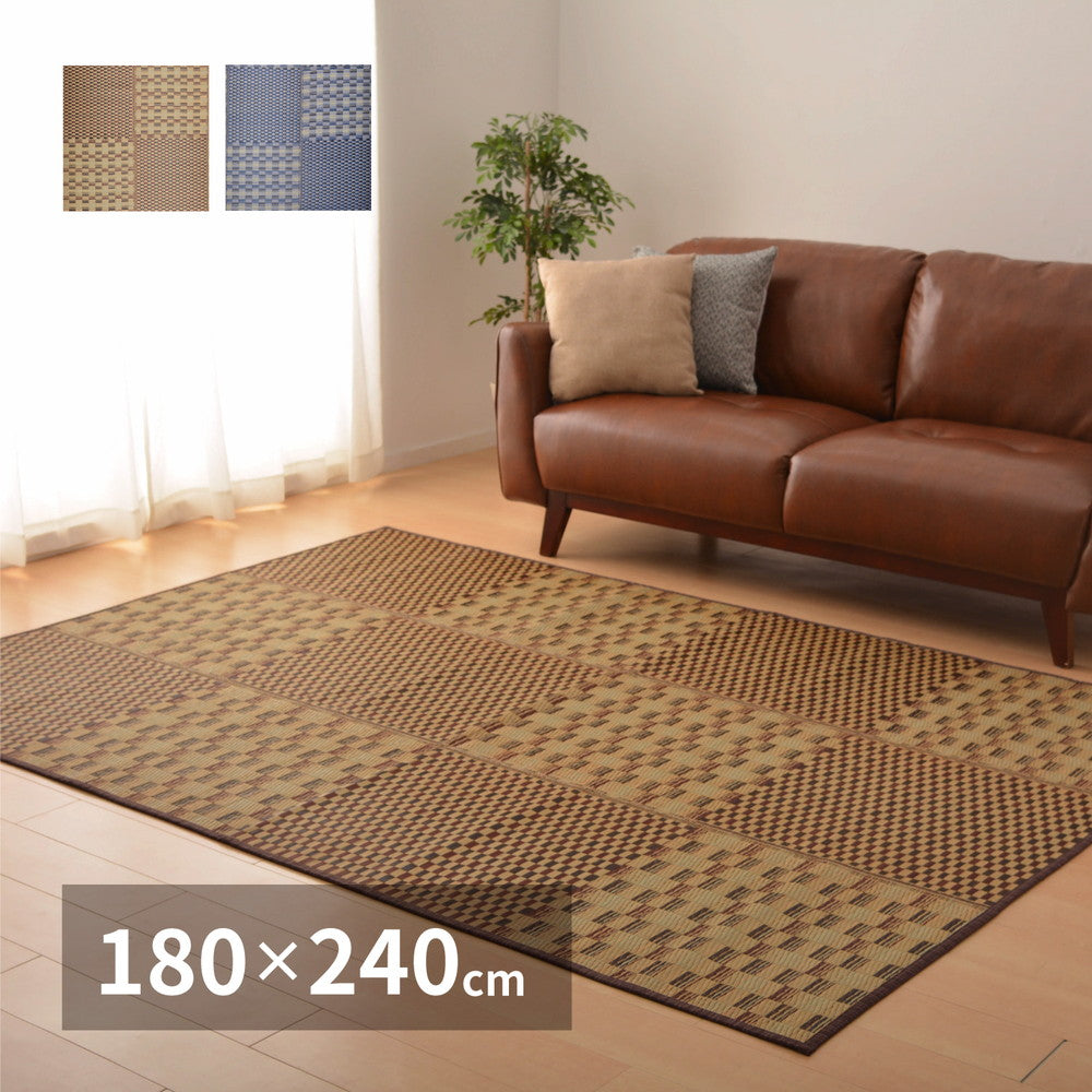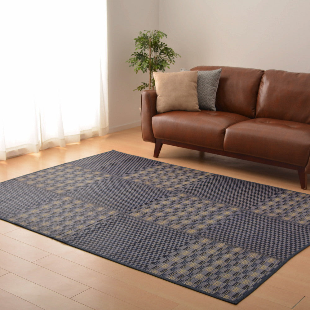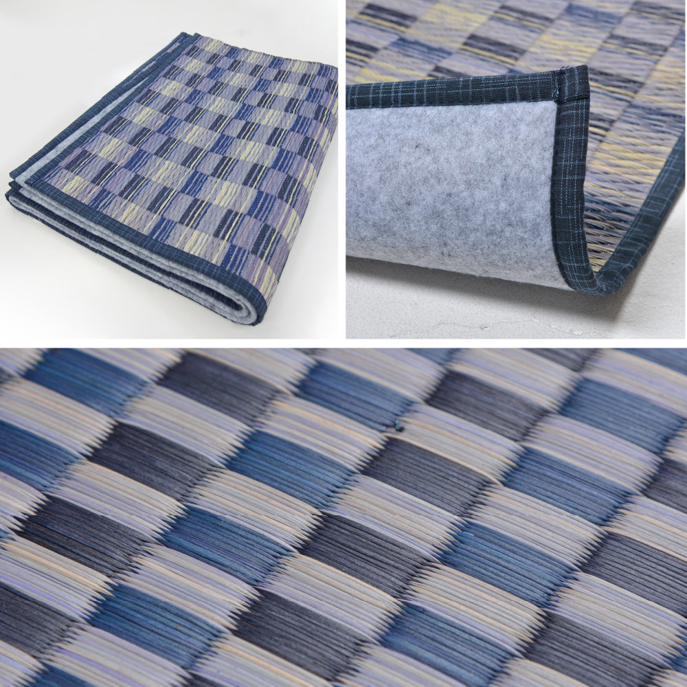- 八丈島に伝わる草木染めの絹織物「黄八」 をイメージしてデザインされた和モダンテイストのい草ラグ。風情のある織り柄は、シャープさも兼ね備え和洋問わず空間に寄り添います。季節によって敷物を替えたい方に嬉しいコンパクトに折りたためる仕様です。